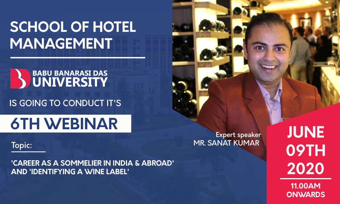 School of Hotel Management, BBD University is going to conduct it’s 6th webinar on 9th June 2020 at 11.00am onwards.