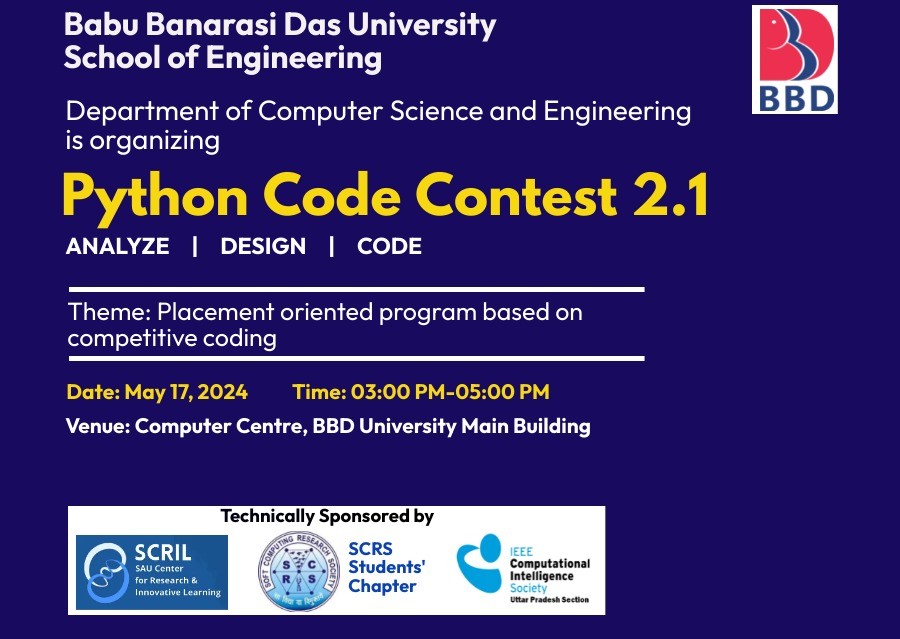 Organized By: Department of Computer Science and Engineering, School of Engineering, Babu Banarasi Das University, Lucknow